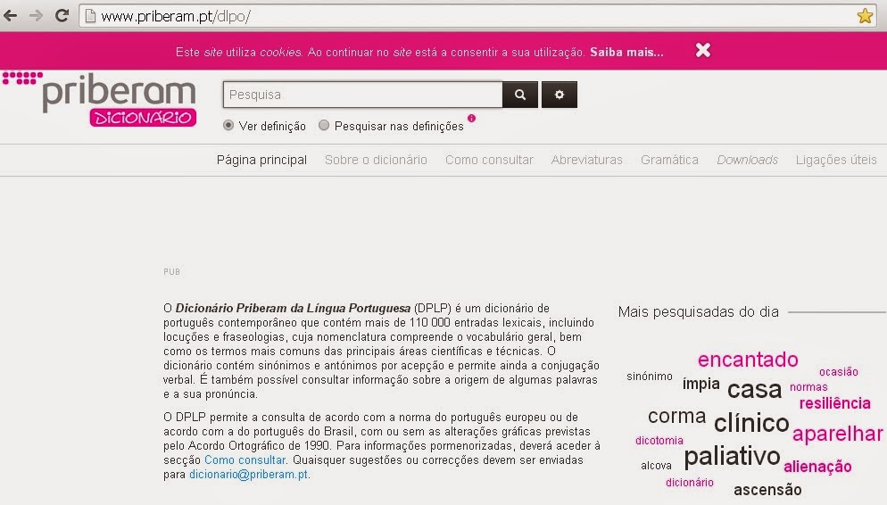 Consulto o Priberam para confirmar a conjugação de um verbo e os meus olhos são chamados para a nuvem do lado direito com as palavras mais pesquisadas do dia.